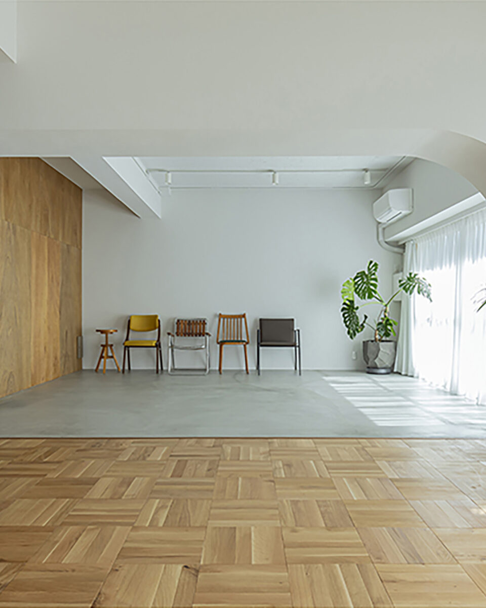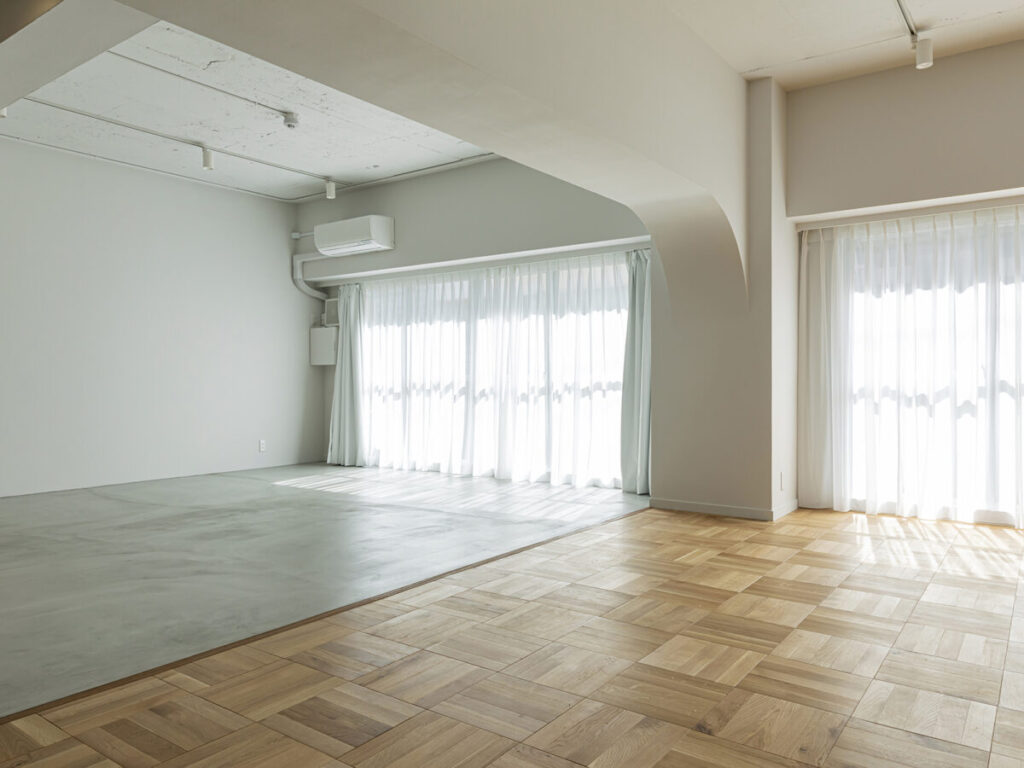 木床とモルタル床、やわらかな自然光が魅力のレンタル撮影スタジオ。