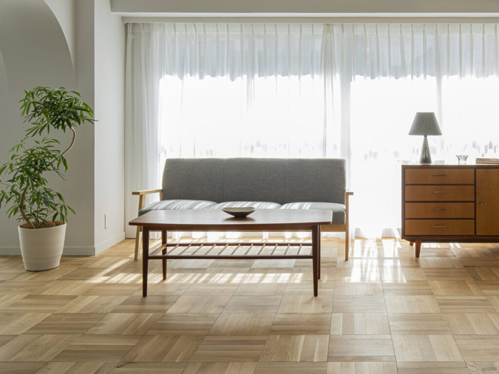 大きな窓から入るやわらかな自然光が、空間に表情をつくります。